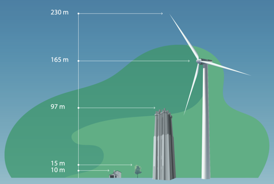 Zo mogen in Duitsland geen windmolens worden geplaatst op minder dan 1.000 meter van woningen, terwijl in Frankrijk zelfs een minimumafstand geldt van 1.500 meter. Daarbij geldt in een aantal Duitse deelstaten ook nog dat er geen woningen op minder dan 10 x de tiphoogte van de windturbine mogen staan. Dus bij een windturbine van 230 meter hoog, geen bebouwing binnen een afstand van 2,3 kilometer.